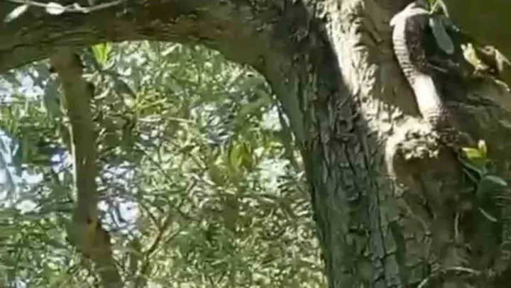 Bursa'nın İznik ilçesinde zeytin ağacının üstünde görülen 2,5 metre uzunluğundaki yılan cep telefonu kamerasına yansıdı.