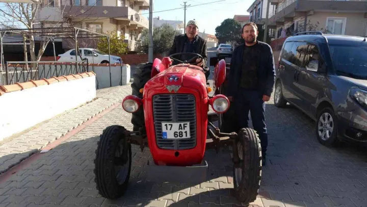 Çanakkale'nin Ezine ilçesinde yaşayan 86 yaşındaki İbrahim Ersan, çiftçiliği bıraktıktan sonra 2020 yılında 37 yıl boyunca kullandığı 1963 model traktörünü sattı. Hayatında başka traktör kullanmayan babası İbrahim Ersan'ın üzüldüğünü gören oğlu Ramazan Ersan (40), babasının ilk göz ağrısı traktörünü 3 yıl sonra satın alıp, kendisine hediye etti. Büyük mutluluk yaşanan İbrahim Ersan, boyanan ve bakımlarını yapılan traktörünü evinin önündeki garajında gözü gibi bakıyor.