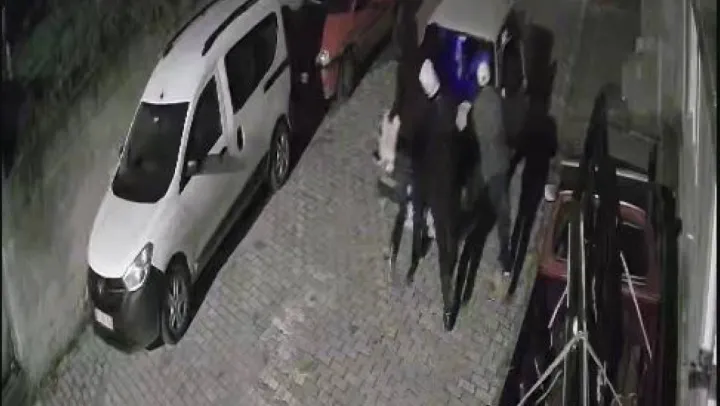Öte yandan 4 şahsın otomobili iterek kaçırdığı anlar bina kameraları tarafından kayda geçti.