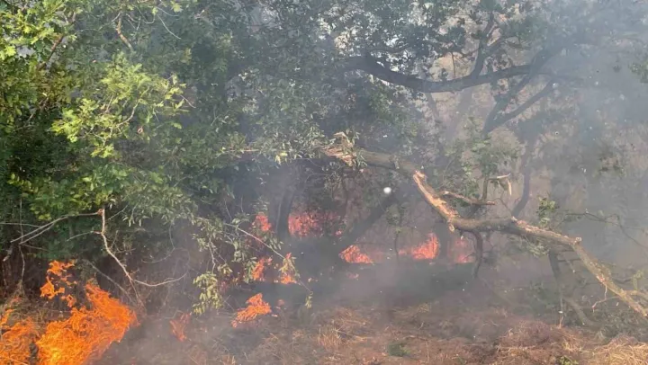 500 dönüm anız ve ağaçlık alan cayır cayır yandı