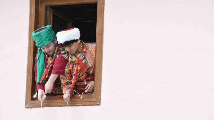 700 yıllık Osmanlı geleneğini yaşatmak için minareden şeker sarkıttılar