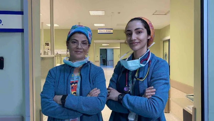 Ameliyathane kıyafetleriyle 9 yaşındayken anestezi uzmanı annesiyle hastanede fotoğraf çektiren Şeyma Nur Güner, bugün aynı hastanede annesinin asistanlığını yapıyor. Kızıyla birlikte görev yapan Dr. Beyhan Güner, 'Nöbetlerimde burada üniversite sınavına çalışıyordu, tercih sırasında öğrendim. 'Alıp asistanını evde çalıştırıyor musun' diyenler oldu, 'sen torpillisin' diyen çok olmuş. Yıllar önce buraya yeni gelmiştik, doktor odasında kaldı, forma giydirdik. Birlikte bir anı olsun diye fotoğraf çektirdik. 9 yaşındaydı. Şimdi evde kızım, burada asistanım, hiçbir şekilde bir ayrıcalık, tolerans yok' dedi.