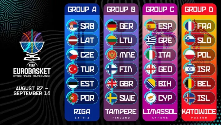 FIBA EuroBasket 2025'te mücadele edecek A Milli Basketbol Takımı'nın maç takvimi açıklandı. Kıbrıs Rum Kesimi, Finlandiya, Letonya ve Polonya'nın ev sahipliğinde 27 Ağustos-14 Eylül tarihleri arasında gerçekleşecek EuroBasket'in final aşaması ise Riga'da yapılacak. A Grubu'nda Portekiz, Estonya, Letonya, Sırbistan ve Çekya ile birlikte yer alan milliler, turnuvadaki ilk maçını 27 Ağustos Çarşamba günü saat 18.00'de Letonya ile oynayacak.