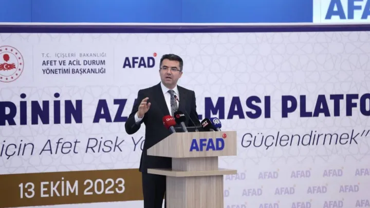 Afet ve Acil Durum Yönetimi Başkanlığında 'Türkiye Afet Risklerinin Azaltılması Platformu 2. Toplantısı' gerçekleştirildi. Toplantıda konuşan AFAD Başkanı Okay Memiş, 'Risk azaltma çalışmalarına ağırlık verilmesi büyük önem taşımaktadır. Afet risklerini dikkate almadan yapılan her yatırım potansiyel bir kayıptır. Riski yönetmek ise bizim elimizde. AFAD olarak risk yönetimindeki hedefimiz, afetlerin meydana getirdiği olumsuz etkileri önlemek, tüm vatandaşlarımızla afet risk azaltma kültürünü yaygınlaştırmak ve afete dirençli şehirler inşa edilmesine katkı sağlamak' dedi.