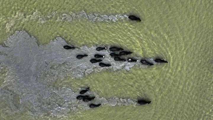 İstanbul'da mandaların yolculuğu havadan çekilen görüntülerle adeta Afrika'yı aratmadı. Mandaların sürü halinde su seviyesinin düştüğü Sazlıdere gölü üzerinden geçtiği anlar ise eşsiz görüntüler oluşturdu.