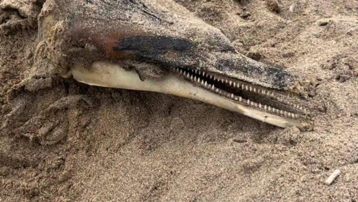 Ağva sahilinde kuma gömülü yunus balığı cesedi bulundu