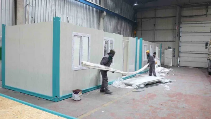 Aksaray'da deprem bölgesi için konteyner üretimi