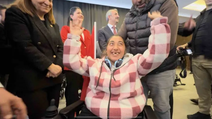 Edirne'de akülü sandalye hediye edilen 21 yaşındaki engelli birey Hazal Kara'nın sevinç çığlıkları ve gözyaşları duygu dolu anlar yaşattı.