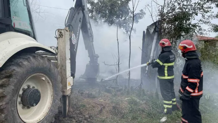 Sakarya'nın Adapazarı ilçesinde alevlere teslim olan samanlık kül olurken geriye tahta yığınları kaldı.