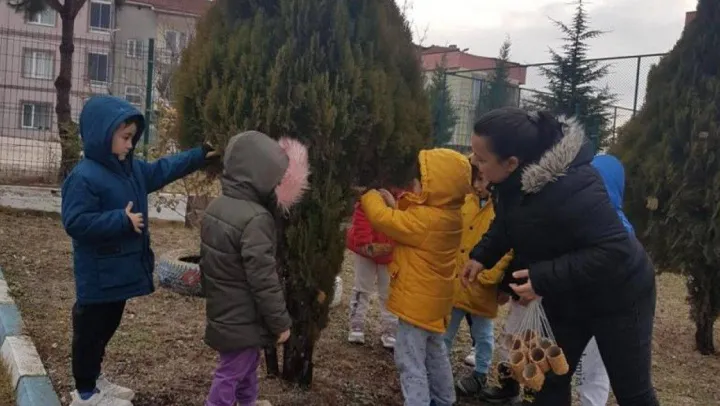 Anaokulu öğrencileri 'Dostlarımız kışın aç kalmasın' adlı projeleri ile sokak hayvanlarının mama ve su ihtiyacını karşıladı.
