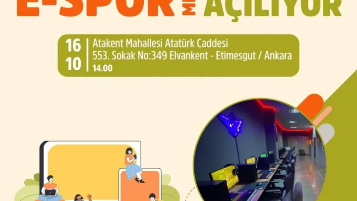 Elvankent E-Spor Merkezi, 16 Ekim Pazartesi günü saat 14.00'te 'Atakent Mah. Atatürk Cad. 553 sk. No:349 Elvankent/Etimesgut' adresinde düzenlenecek törenle açılacak.