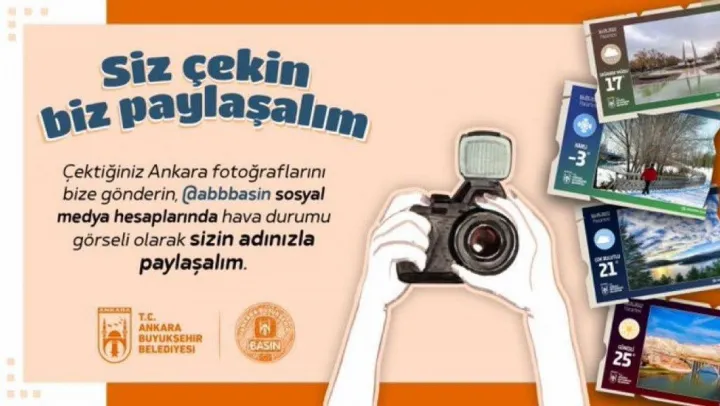 Başkentin güzelliklerini tanıtmak için çeşitli uygulamalara imza atan Ankara Büyükşehir Belediyesi, Başkentli fotoğrafseverlere çağrıda bulundu. Fotoğraf sanatçılarından Ankara temalı fotoğraflarını paylaşmalarını isteyen Büyükşehir Belediyesi Basın Yayın ve Halkla İlişkiler Daire Başkanlığı, gönderilen fotoğrafları fotoğrafçıların ismiyle paylaşacağını ve hava durumu görsellerinde kullanılacağını duyurdu.