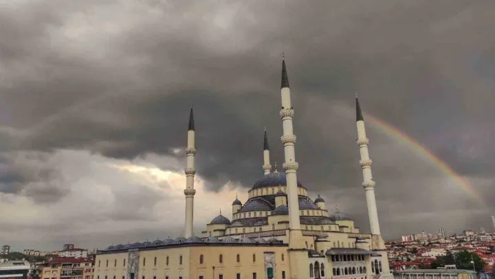 Ankara'da akşam saatlerinde yağmur etkili oldu. Bir süre devam eden yağış sonrası kapalı bulutların arasından güneş tekrar gözüktü. Güneşin çıkmasının ardından Kocatepe Camii üstünde oluşan gökkuşağı, kartpostallık görüntüler oluşturdu. O anlar fotoğraf karelerine yansıdı.