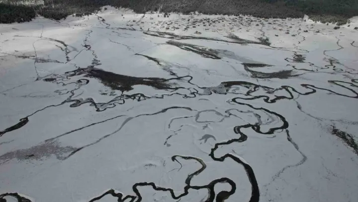Ankara'nın Çamlıdere ilçesinde yaylalarda etkili olan kar yağışı sonrası mendereslerin kilometrelerce uzanan kıvrımlı yapısı drone ile görüntülendi. Çevresi yüksek dağlarla çevrili geniş bir ovaya yayılan menderesler, kar ve yağmur sularıyla besleniyor. Yaz aylarında bölgedeki köylerin otlak ve su ihtiyacının da karşılandığı ova ile menderesler kar yağışı sonrası beyaz örtüyle kaplandı. İlkbahar aylarında rengarenk çiçeklerin açtığı, kışın kar örtüsüyle bambaşka bir güzelliği yansıtan menderesler, İHA ekibince drone ile görüntülendi.