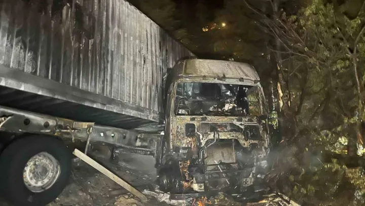 Ankara'nın Elmadağ ilçesinde kontrolden çıkan tır demir bariyerleri aşarak şarampole yuvarlandı. Alev alan tır kullanılamaz hale geldi.