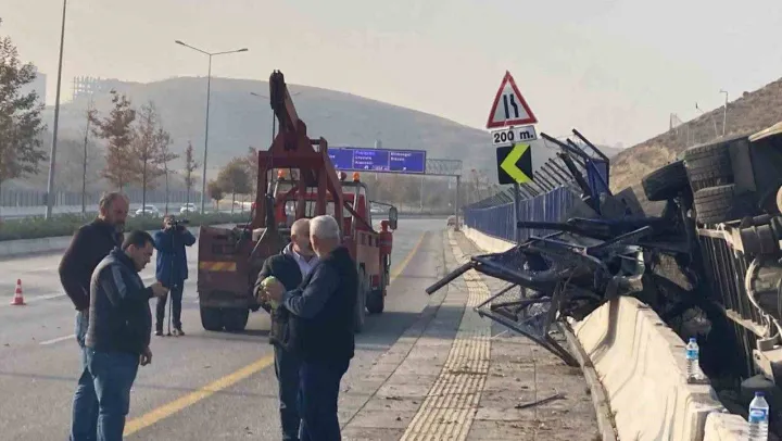 Ankara'da servis otobüsü demir bariyerleri aşarak devrildi. Kazada 2 kişi yaralandı.