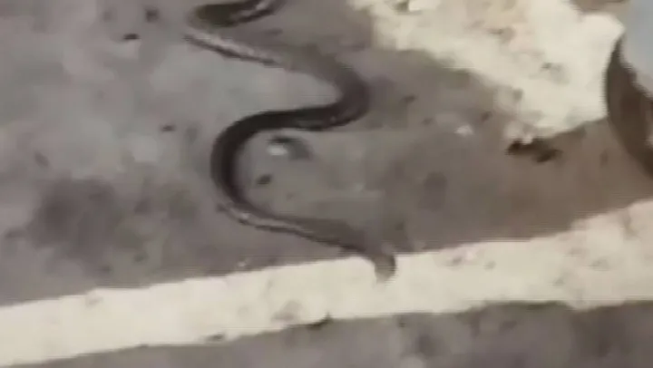 Ankara'nın Mamak ilçesine bağlı Üreğil Mahallesi'nde bulunan bir sitenin çöp konteynerinin yanında görülen yılan bir vatandaşın cep telefonu kamerasına yansıdı.
