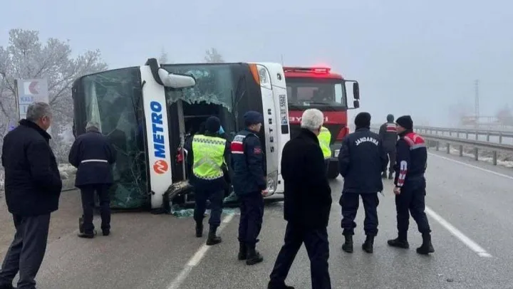 Ankara'da yolcu otobüsü devrildi: 6 yaralı