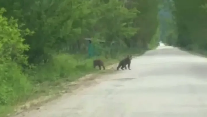 Bilecik'in Pazaryeri ilçesinde anne ayı ve yavruları aracıyla yoldan geçen bir vatandaş tarafından cep telefonuyla görüntülendi.