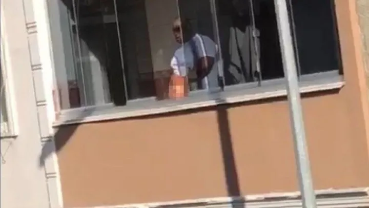 Öte yandan, gencin annesin kafasını balkondan atma anı cep telefonu kamerasına yansıdı. Görüntüde, yolda ve evlerinin balkonunda bulunan vatandaşların bağırdığı ve şahın kafayı yere attığı görülüyor.