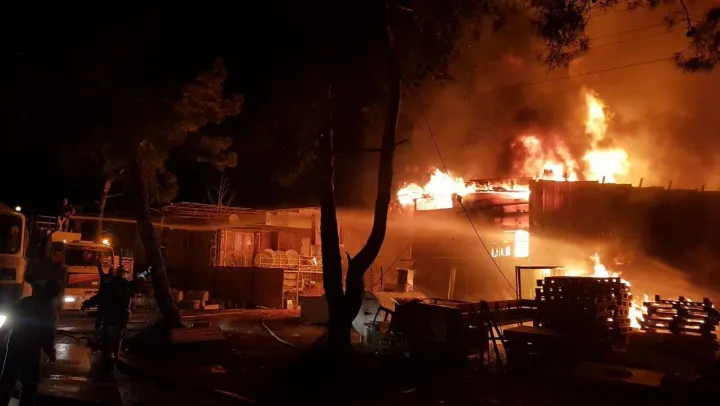 Antalya'da iki iş yerindeki yangın geceyi aydınlattı