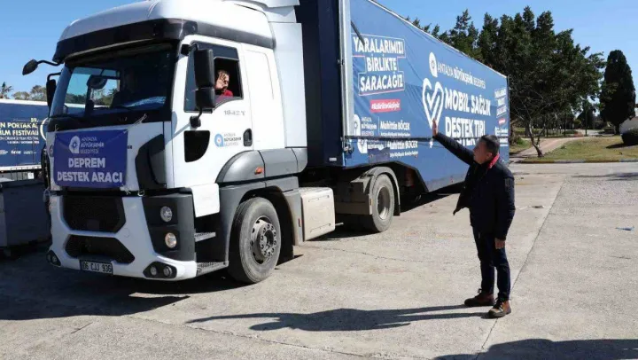Antalya Büyükşehir Belediyesi, gelen talepler doğrultusunda Hatay'a 11 sağlık personeli ile 3 ambulans, 20 yataklı sağlık tırı ve ilaç gönderdi.