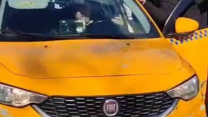 Araca girip taksiciyi yumruklayarak böyle darp etti
