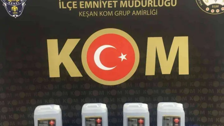 Edirne'nin Keşan ilçesinde polislerin arama yaptığı otomobilden 40 litre etil alkol ele geçirildi. Olayla ilgili iki kişi hakkında adli işlem başlatıldı.