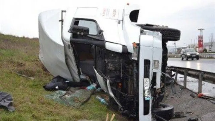 Tekirdağ'ın Çerkezköy ilçesinde argan yağı yüklü TIR'ın devrilmesi sonucu sürücü ağır yaralandı.