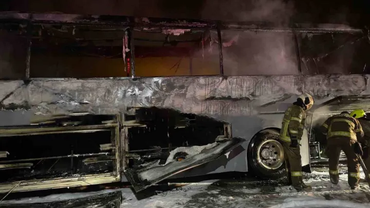 Balıkesir'in Bandırma ilçesinde meydana gelen olayda bir yolcu otobüsü, Gönen Köprüsü üzerinde arızalandı. Sürücü ve görevlilerin dışında kimsenin bulunmadığı otobüs, saniyeler içinde alev topuna döndü. Yoldan geçenler akşam karanlığında yükselen alevleri cep telefonlarıyla görüntüledi. İtfaiye ekiplerinin müdahalesiyle yangın söndürülürken, otobüsün ise küle döndüğü görüldü.