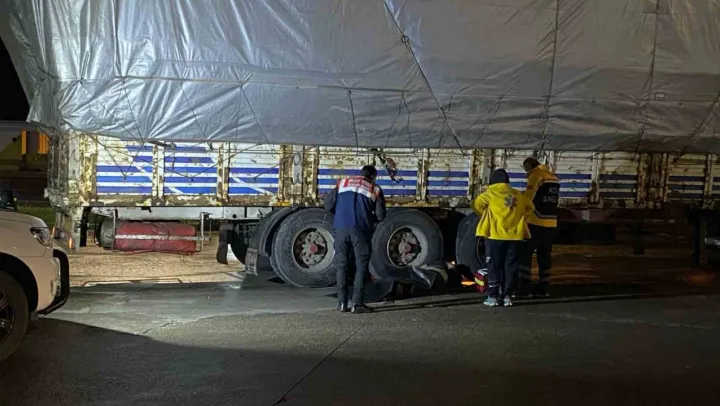 Çanakkale'nin Biga ilçesinde iddiaya göre arızalanan tırı tamir etmek için aracın altına giren tır şoförü, lastiğin altında kalarak hayatını kaybetti.
