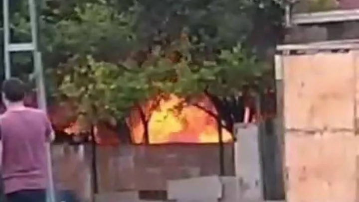 Arnavutköy'de bir binanın bahçesinde bulunan kömürlük alev alev yandı.