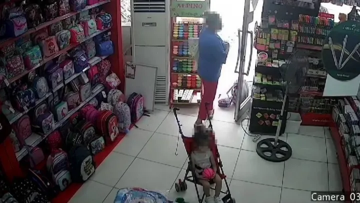 Olay, dün Arnavutköy Merkez Mahallesi'nde bulunan bir kırtasiye dükkanında gerçekleşti. Dükkana bebek arabasıyla gelen kadın vitrinde asılı olan çantaların modellerini inceledi. Kısa süre sonra beğendiği modellerden birini çalarak kayıplara karıştı. Hırsızlık anı işyerinin güvenlik kamerası tarafından saniye saniye görüntülendi.
