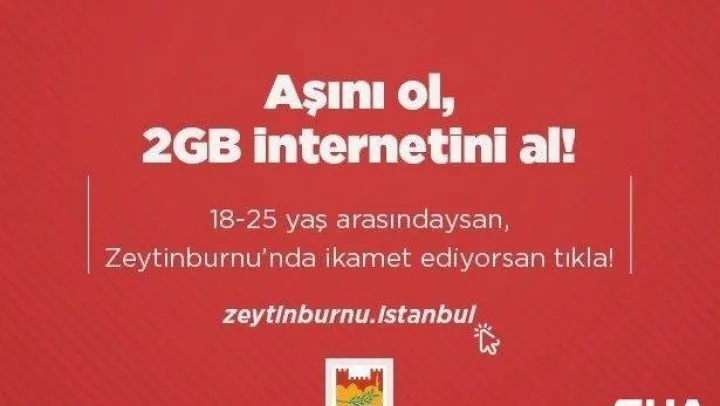 Zeytinburnu Belediyesi covid19 aşısı olan gençlere 2GB mobil internet hediye ediyor.