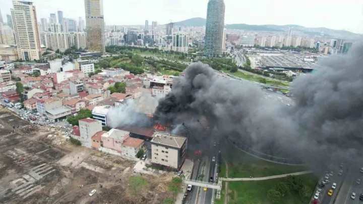 Ataşehir'de 3 binaya sıçrayan yangın havadan görüntülendi