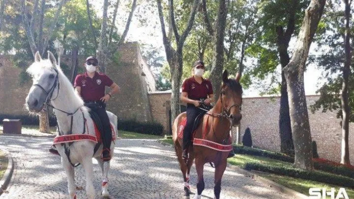 Türkiye genelinde korona virüse karşı önlemler alınmaya devam ediyor. Bu kapsamda İstanbul Emniyet Müdürlüğü Çevik Kuvvet Şube Müdürlüğüne bağlı 'Atlı Polis' birlikleri Gülhane Parkı'nda vatandaşlara yönelik korona virüs denetimi gerçekleştirdi. Maske ve sosyal mesafe kuralına uymaları konusunda bazı vatandaşları bilgilendiren ekipler, maske takmayan vatandaşları da uyardı. Çevredeki vatandaşların büyük bir kısmının ise korona tedbirlerine uyduğu görüldü. Öte yandan, korona virüs denetimlerini gerçekleştiren 'Atlı Polis' ekipleri ile çevredeki vatandaşların bazıları fotoğraf çektirirken bazı vatandaşlar da atları sevdi.