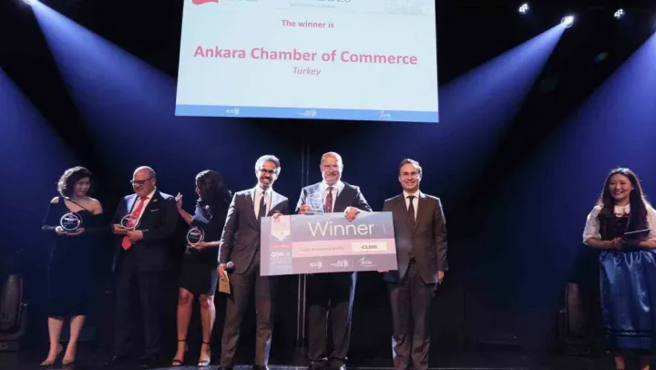 Ankara Ticaret Odası'ndan yapılan yazılı açıklamada, ATO'nun, Milletlerarası Ticaret Odası (ICC) çatısı altında faaliyet gösteren ve küresel anlamda Odaların temsilciliğini üstlenen Dünya Odalar Federasyonu'nun (WCF) düzenlediği '2023 Dünya Odalar Yarışması'nda 'ATONET Üye Hizmet Platformu' projesiyle 'En İyi Oda Sistemi İnovasyon Projesi' kategorisinde birinci olduğu bildirildi. ATO, yarışma finalinde ABD ve Çin'den üç odayı geride bırakarak yarışmayı kazandı.