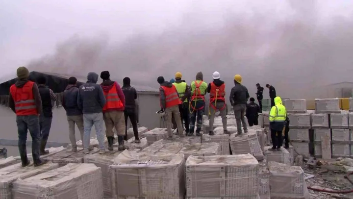 Çökmenin olduğu sırada içerde kalan bir işçi ise yuvaları bulunan güvercinleri uçurarak kurtardı. Konteynerler kısa sürede alevler içinde kaldı. İşçilerin haber vermesiyle sağlık, polis ve çok sayıda itfaiye ekibi sevk edildi.