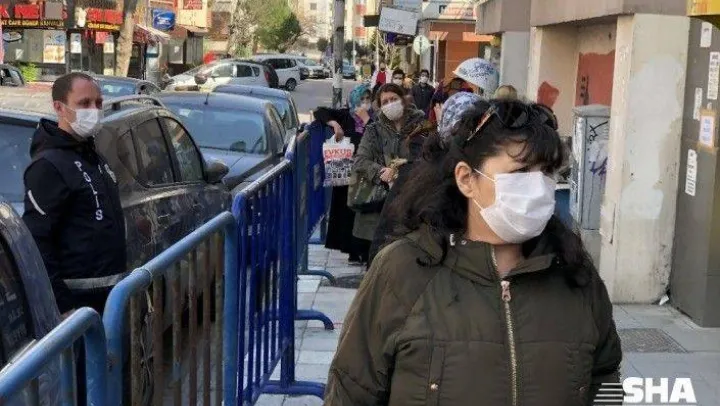 Korona virüs nedeniyle Ramazan Bayramı ikramiyeleri erkene alındı. Maaşları hesaba yatan ve PTT'de işleri olan vatandaşlar, şubeler önünde uzun kuyruklar oluşturdu. Polisler sık sık vatandaşları uyararak sosyal mesafeye uymalarını istedi. Ancak, bazı vatandaşlar uyarıları dikkate alırken, bazı vatandaşlar ise uyarılara aldırış etmedi. Kuyrukta bekleyen vatandaşların çoğu ise maske takarak sıra bekledi. İçeriye tek tek alınan vatandaşların ataş ölçümü de yapıldı.