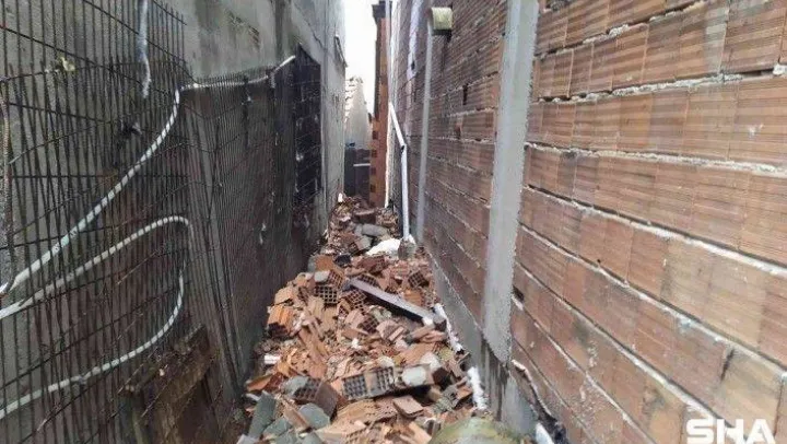 Avcılar'da aşırı rüzgar bir süre önce çıkan yangında hasar gören çatının duvarını yıktı. Duvarın yan taraftaki binanın bahçesine yıkılması nedeniyle vatandaşlar büyük panik yaşadı.