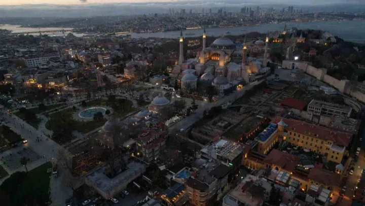 Ramazan ayının ilk gününde iftarını açmak isteyen bazı vatandaşlar, Ayasofya Camii'nin avlusunda yerini aldı. İlk iftarını açmak için gelen vatandaşlar dron ile havadan görüntülenirken, bu yıl avluda yoğunluğun oluşmadığı görüldü.
