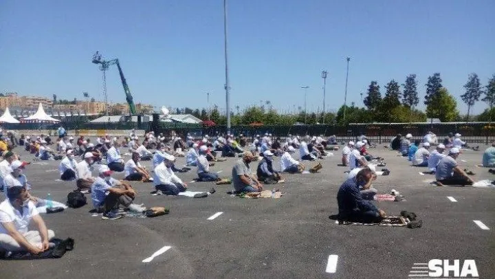Şehir dışından gelip Ayasofya Camii'ne alan dolduğu için gidemeyen vatandaşlar Cuma namazını Yenikapı etkinlik alanında kıldı.