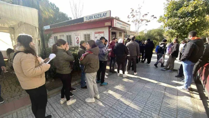 Kahramanmaraş'ta meydana gelen yıkıcı depremin ardından yaralılar için kan bağışında bulunmak üzere Aydınlılar da harekete geçerken, vatandaşlar Kızılay Kan Bağışı Merkezi önünde uzun kuyruklar oluşturdu.