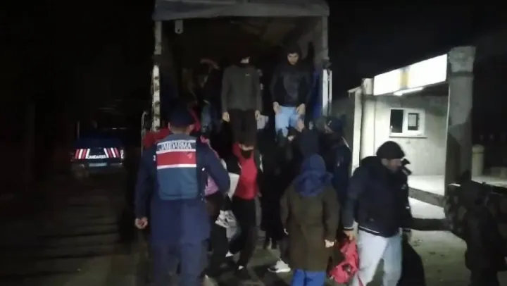 Ayvacık'ta minibüs ile kamyonet kasasından 63 kaçak göçmen çıktı, 2 organizatör yakalandı
