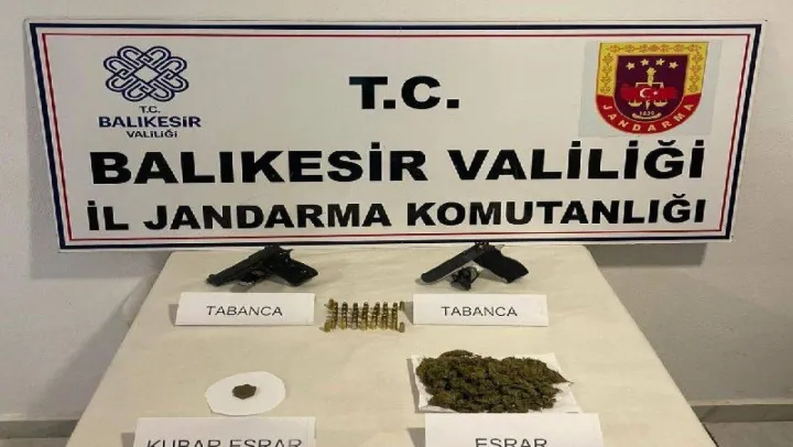 Balıkesir İl Jandarma Komutanlığınca, uyuşturucu madde imal ve ticaretine yönelik yapılan istihbari çalışmalarda, Ayvalık'ta uyuşturucu madde bulundurduğu tespit edilen 3 kişinin ikamet adresinde yapılan aramada; 40 gram kubar esrar ve 2 adet tabanca ele geçirildi. Olaya karışan 3 şahıs hakkında adli tahkikata başlanıldı.