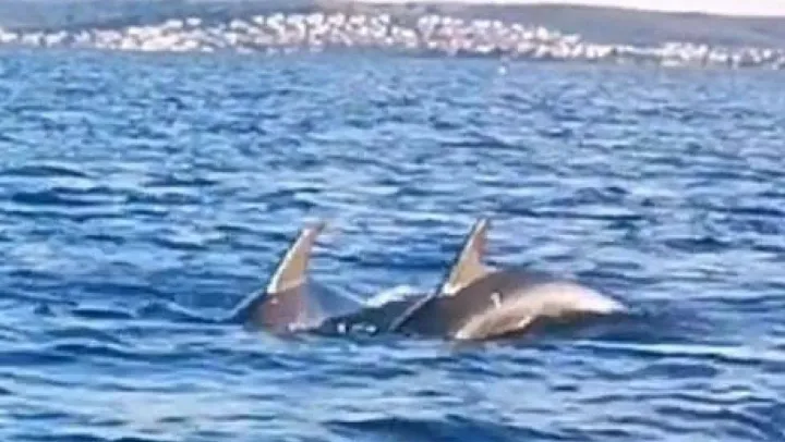Geçtiğimiz yıl bir yunus balığının sahil bandındaki gezi teknelerinin şamandırasıyla oyunlar oynamasının dron kameralarına yansıması, bir kano sporcusunun yunuslarla yarışması gibi ilginç görüntülerin çekildiği Ayvalık'ta geçtiğimiz aylarda kendilerine ait sürat teknesiyle yarışan sevimli bir yunusun görüntülerini çeken Özlemiş çifti bu kez 5 yunus balığıyla ilginç görüntüler kaydetti.