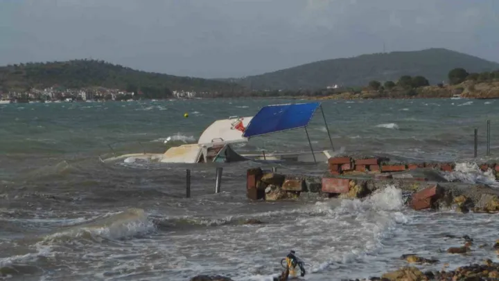 Meteorolojiye göre, dün öğleden sonra başlayan ve güney yönlerinden saatte 50 ile 75 kilometre esen, ani ataklarla zaman zaman 100 kilometre hıza ulaşan fırtına Ayvalık sahil şeridindeki bazı küçük balıkçı teknelerini batırdı.