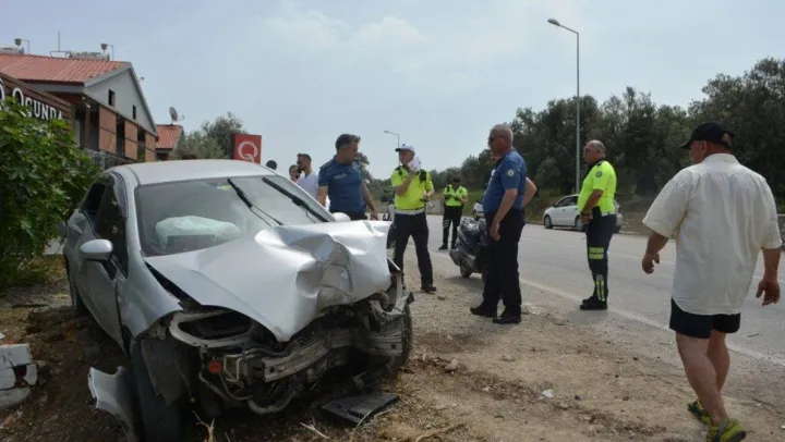 Ayvalık'ta kontrolden çıkan otomobil yayaya çarptı 2 yaralı