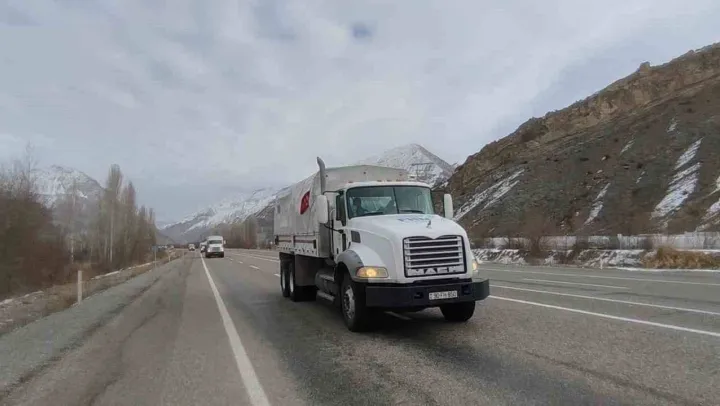 Azerbaycan'dan deprem bölgelerine yardım için yola çıkan 14 araçlık konvoy, Erzurum'un Uzundere ve Tortum ilçelerinden geçerek deprem bölgesine gitti.