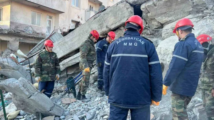 Kahramanmaraş'ın Pazarcık ilçesinde meydana gelen 7.7 büyüklüğündeki depremin ardından Azerbaycan'dan gelen 375 kişilik ekip, enkazda kurtarma çalışmalarına destek veriyor.
